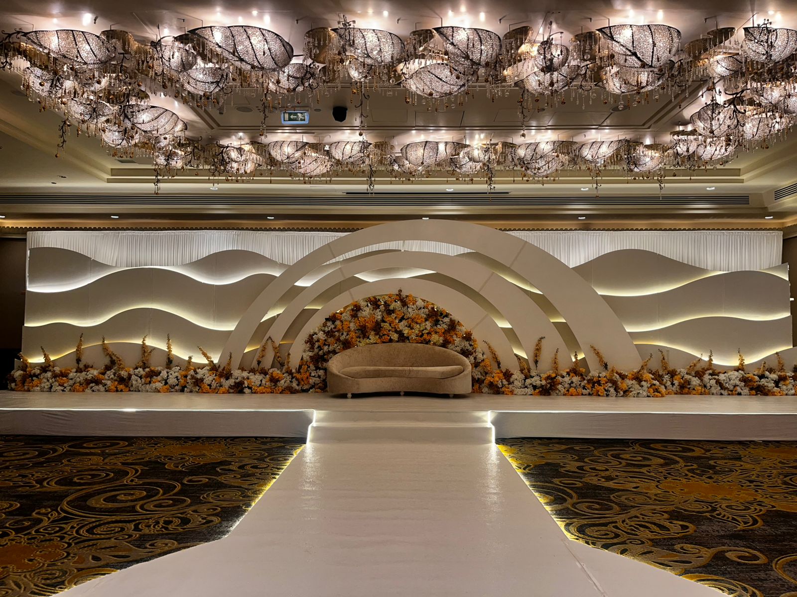 👑 5 نصائح ذهبية لاختيار قاعة الزفاف وتصميم الكوشة الملكية المثالية